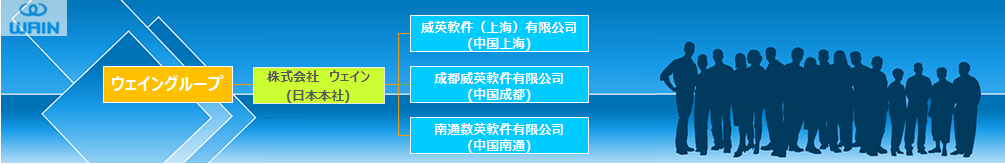 威英軟件(上海)有限公司 URL: http://www.wain-sh.com/?lang=jp | 住所と連絡 ・ 〒200032 中国上海凱旋路3131号明申中心大厦1803室 ・ TEL:8621-5407-1262 ・ FAX:8621-5467-3436 | 事業内容 ・ 情報処理システムの設計及び受託ソフトウェアの開発 ・ マイクロコンピュータシステムの開発 ・ ソフトウェア解析、移行およびテストサービス ・ 解析、移行、テストツールの研究 ・ AI、IoTの研究・開発(ツール化、サービス化導入) ・ ビッグデータ分析の研究・開発 |